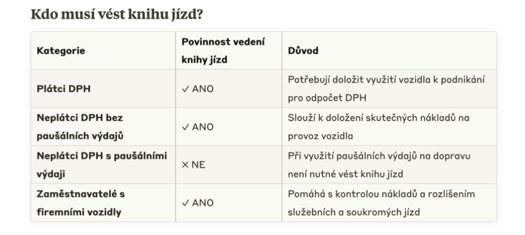 Kdo musí vést knihu jízd?